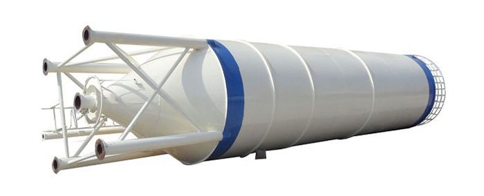 水泥倉(cāng)為鋼結(jié)構(gòu)件,它由支架、筒體、翻板門、倉(cāng)頂收塵器、破拱裝置、輸料管組成。粉料靠壓力空氣通過輸料管被送入筒倉(cāng),倉(cāng)內(nèi)產(chǎn)生的壓力氣體通過倉(cāng)頂收塵器排放出去。各水泥倉(cāng)中均設(shè)有上下料位指示器,可顯示料倉(cāng)空滿狀態(tài)。